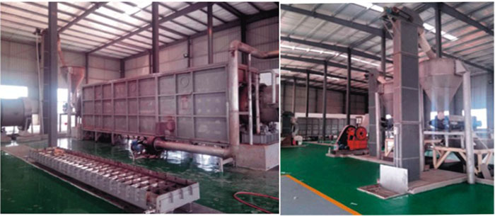 環(huán)保金礦選礦劑的生產(chǎn)是要求將五種固體原料按照一定的配比要求,進(jìn)行高溫長時間的混合反應(yīng)后,在高溫段轉(zhuǎn)化成高溫液體,經(jīng)過冷卻并機(jī)械破碎后轉(zhuǎn)化成固體小顆粒,包 裝出廠銷售與使用。其中,需要經(jīng)過高溫反應(yīng)與混合的物料 有三種,另外兩種物料在粉碎后另外添加并混合均勻。